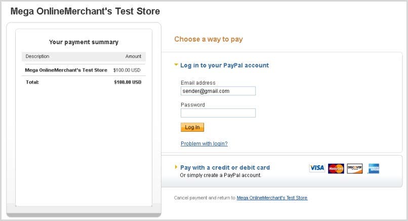 a sender's credit card without logging into PayPal to complete the transaction.The